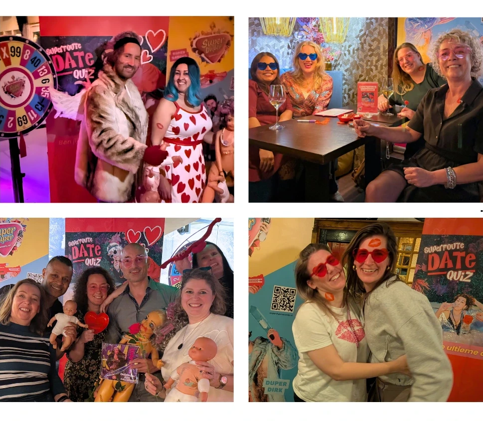 De Superfoute Date Quiz is dé hilarische pubquiz voor iedereen die denkt verstand te hebben van daten, relaties, flirten en het andere geslacht! Spelrondes ⤵︎