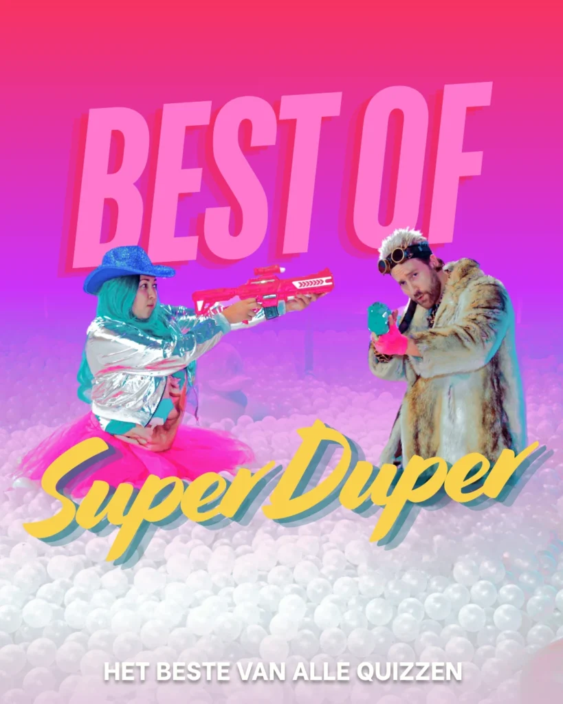 Bereid je voor op een non-stop stroom aan verschillende spellen, vragen en opdrachten die elkaar in hoog tempo opvolgen. Net als je denkt dat je weet wat er komt… schakelen we weer door. Geen moment verveling, geen moment hetzelfde en juist daardoor blijft iedereen constant betrokken en geamuseerd. Van denken naar doen, van concentratie naar lachen. Stilzitten is geen optie, meedoen wel In een zinderende finale komt alles samen en bepalen de sterkste allrounders wie zich mag kronen tot de Best of Super Duper kampioenen